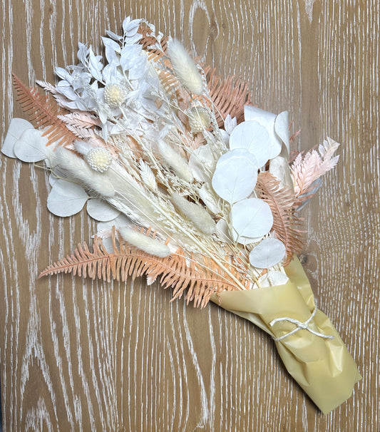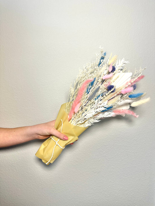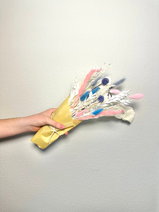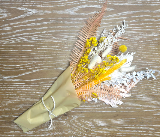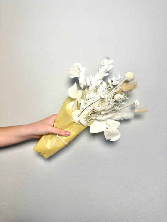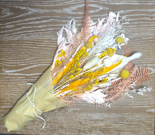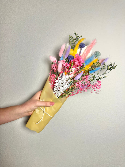 Our everlasting arrangements are created using all preserved and dried flowers, grasses and plants. Unlike fresh flower arrangements, your handmade Golden Hour Flora bouquet will look the same the day it arrives in your home as it will for many months to come.
