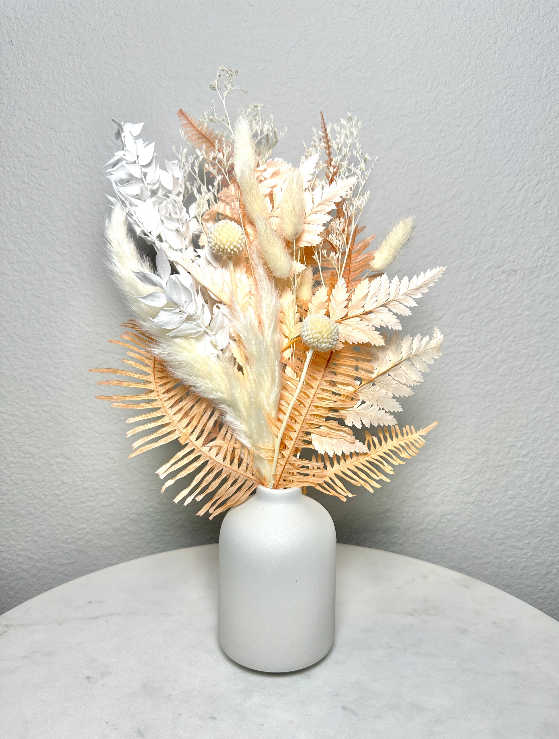 The Daybreak Collection captures the soft sky as day breaks in gentle pink, peach and neutrals! Each bouquet features real flowers and plants that have been preserved and dried. Daybreak happens just once per day, but your arrangement is everlasting!